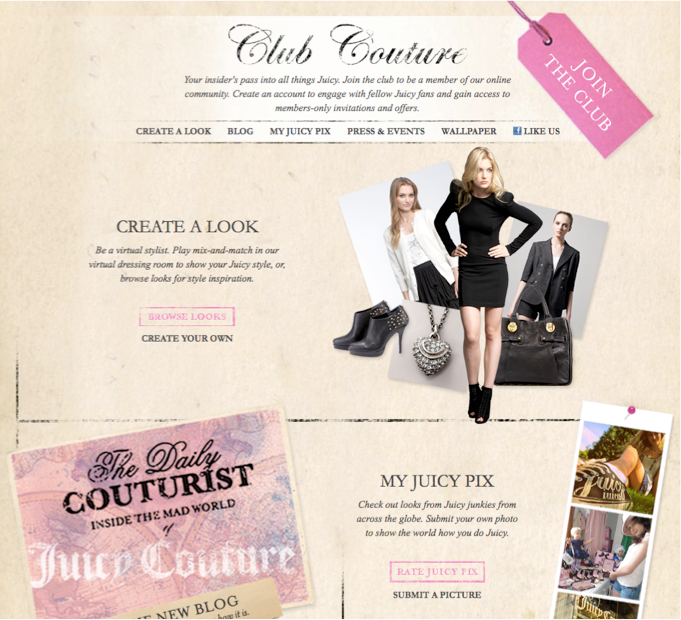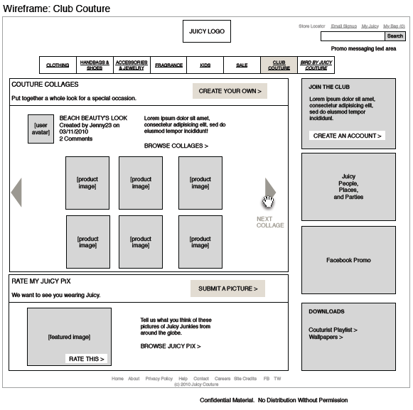 Redesigned the social shopping and community areas of JuicyCouture.com. Updated site navigation to encourage use of these areas, and added a "Shop by look" feature for shopping multiple pieces at once.